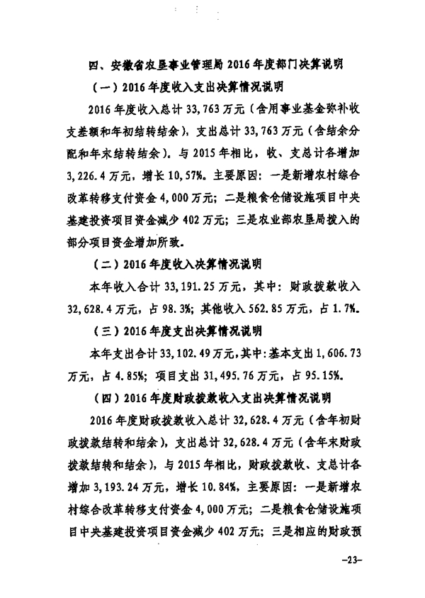 安徽省农垦事业管理局2016年部门决算情况