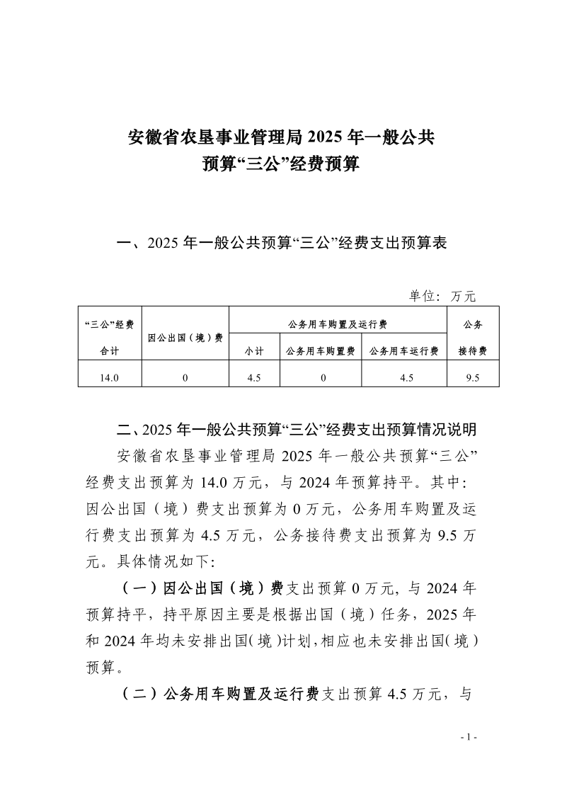 安徽省农垦事业管理局2025年一般公共预算“三公”经费预算.pdf