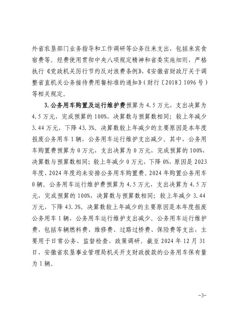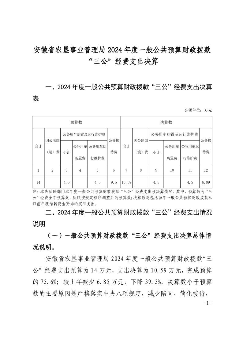 安徽省农垦事业管理局2024年度一般公共预算财政拨款“三公”经费支出.pdf