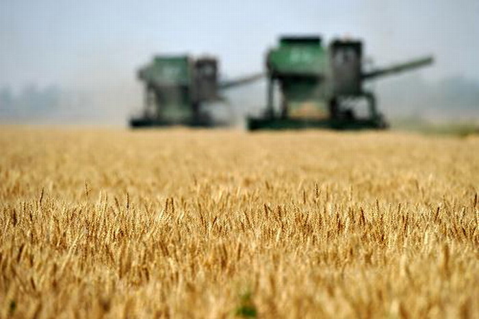 在龙亢农场良种基地,成熟的小麦等待专机的收割。