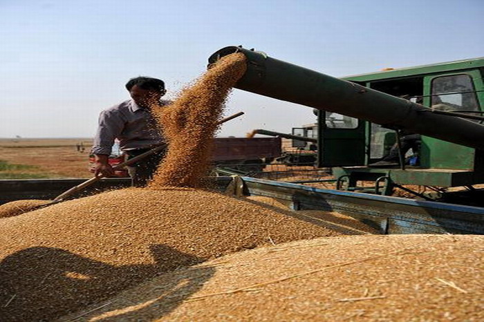龙亢农场职工在装运刚刚收割的小麦。据安徽省气象部门预报,