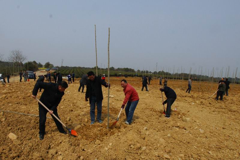 3月14日,皖垦茶业集团党工委书记张国祥率本部及3个专业公司的30多名员工,自备工具,前往九连山茶场与基层干群一道参加义务植树,不到半天就完成了复垦土地1000株法梧的绿化任务。领导干部的率先垂范,推动了所属各茶场春季义务植树活动、绿化家园提升行动的蓬勃开展。