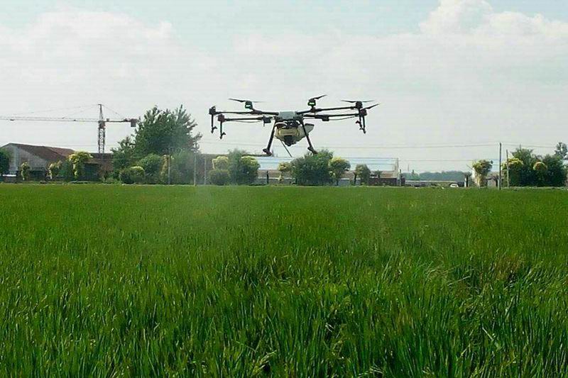 潘村湖农场无人机助阵稻田植保