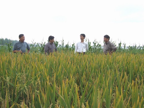 9月14日,安徽省著名水稻育种专家、省农科院绿色食品研究所所长、旱稻品种绿旱一号育种人朱启升教授一行3人到龙亢农场调研鉴定旱稻在地生长情况。为发展适应性农业,今年龙亢农场秋季开展了旱稻试种与试验,实验采用农科院旱稻育种专家朱启升教授选育的绿旱一号,采用农科院专门开发的除草剂除草技术,经过龙亢农场农科所技术人员的精心管理,克服了旱稻种植中杂草防除的技术难关。考察组一行在龙亢农场领导的陪同下,深入龙亢农场旱稻品种绿旱一号田间参观了旱稻生长情况。调研组一行认为该品种在龙亢农场旱直播种植试验表现良好,技术措施大趋成熟,可以在江淮一带普遍推广。