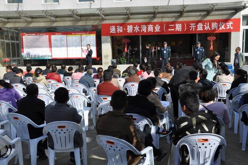 1027上午,通和地产龙亢项目公司售楼中心人头攒动,通和·碧水湾商业压轴房源在此开售,1个多小时即销售一空。至此,历经2年半7次开盘,1200套住宅和商铺名花有主,销售业绩优良,项目完美收官。
