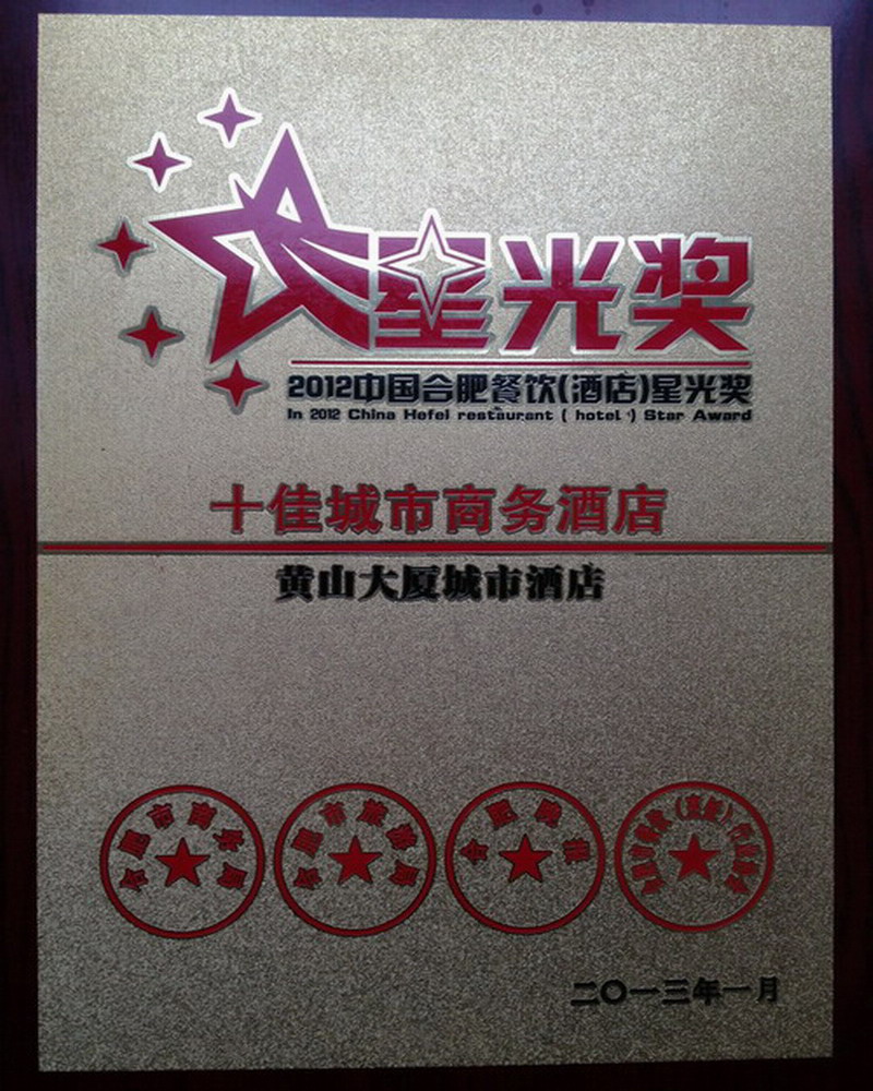 日前,由合肥市商务局、旅游局、餐饮(烹饪)行业协会、合肥晚报联合举办的星光奖颁奖典礼隆重举行,安徽农垦黄山大厦荣获合肥十佳城市商务酒店称号。