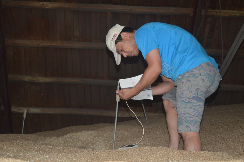 截至7月2日,皖垦种业天长分公司全面完成今年麦种收贮任务,共计入库820多万公斤。为确保到手的良种颗粒归仓,自6月5日麦收以来,全体员工不畏高温酷暑和粉尘噪音,严守一线、抢抓时间、严把质量关,最终圆满完成任务。目前分公司正按工作计划组织员工对各库区的麦种进行平库、粮温检测等,扎实做好良种储存工作。图为种业员工检测粮温。(王鹏)