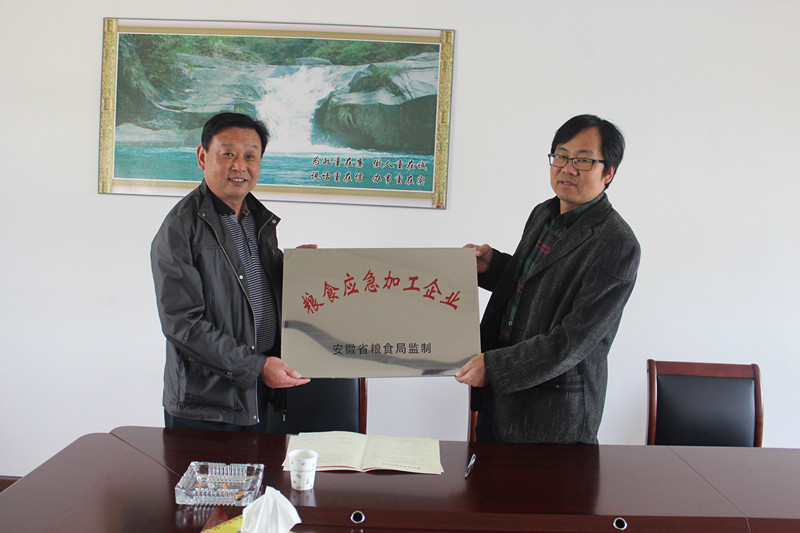 皖垦食品集团雁湖面粉有限公司入选安徽省粮食应急加工企业。4月24日下午,怀远县粮食局副局长王志良前来代为授牌,并与皖垦食品副总经理黄树军现场签订了粮食应急保障协议书。(李峰)