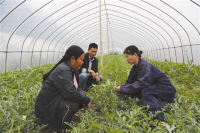 朱堂芝在向职工群众讲授西瓜管理技术