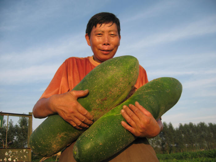回族青年农工董革命种了60亩蔬菜,其中30冬瓜,亩产达到7500公斤,按每公斤4毛钱计算,预计仅冬瓜这一茬毛收入就有2500元,比棉花亩效益翻了一番。