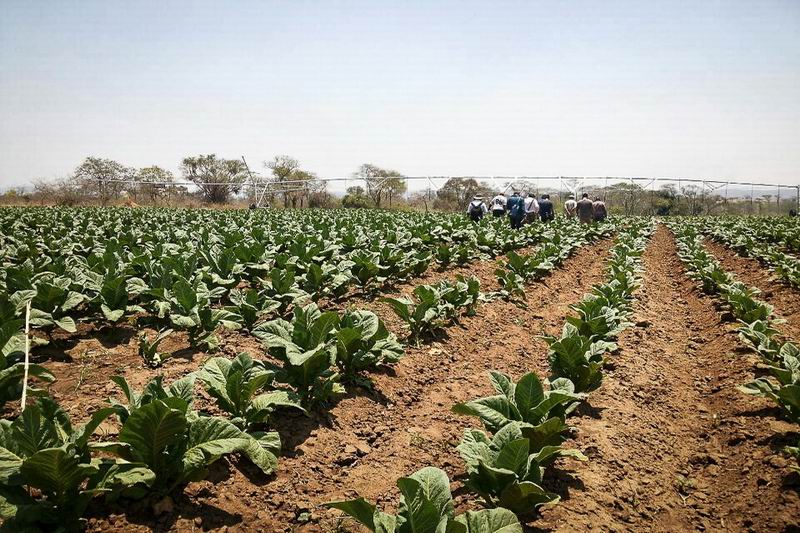 1017,皖津公司在穗喜农场举办了每半月一次的烟草种植现场例会。笔者在现场看到,9月初移栽的本季首茬烟草长势喜人,一些工人正在进行烟叶打底工作:去掉底部老弱叶,减少养分浪费,促进生育成长。这里的烟草长势旺盛、色泽均匀,赢得了白人顾问的高度赞誉。