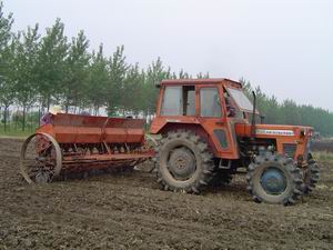 龙亢农场各家庭农场抓住雨后有利墒情,千方百计抢 墒播种,截止目前已完成2万亩大豆的夏种任务。图 为机播现场。(龙亢农场 邵乃昌)