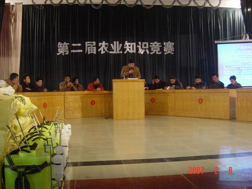 为了宣传、普及农业生产科技知识,促进职工不断加强业务理论知识学习和应用,以提高农场科学种田整体水平,为粮食产量再攀新高夯实基础。2月8日下午,大圹圩农场工会和场农技推广服务中心在场部大礼堂举办了“第二届农业知识竞赛”活动。7个农业分场分别组织代表队积极参赛。各农业单位主管、农业技术员、2006年度农场水稻高产户、部分农业职工一百多人到场观看、学习。