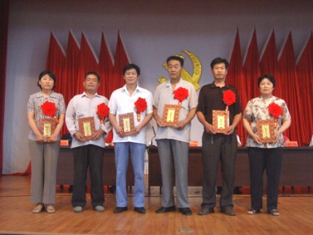 大会在雄壮的《国歌》声中开始,党委书记杨俊宇宣读了场党委《关于表彰先进党组织、优秀党务工作者和优秀共产党员的决定》,场党委委员对5个先进基层党组织、4名优秀党务工作者和33名优秀共产党员进行了颁奖,各类先进典型作了精彩的发言。会议同时表彰了庆祝“七一”构建和谐农场征文比赛、学习“决定”理论知识测试等系列党日活动中涌现出的获奖单位和个人。场党委副书记张建民代表党委发表讲话。“讲话”首先回顾了中国共产党走过的86周年光辉历程,总结了农场一年来农场党建工作和“三个文明”建设取得的成就。对如何围绕中心推进党建工作提出五点希望:一是注重发挥党组织、党员在和谐农场建设中的作用;二是广大党员做和谐家庭、和谐邻里的带头人;三是组织开展“党员承诺制”活动;四是创新民主评议党员制度,启动党员“挂红星”工程;五是开展好“寻找身边亮点”,积极“争先创优”活动。张建民最后要求各级党组织重点做好先进性教育活动、加强新农村建设、强化组织建设、和谐企业建设、党建知识培训、迎接党的十七大的理论学习等工作,特别是扎实开展好“作风教育月”活动。他号召广大党员干部立足“五个做起”:心系大局,振兴农场,从本职做起;转变职能,服务基层,从实际做起;严守党纪,练就自律,从点滴做起;提高修养,增进团结,从我做起;树立正气,创文明机关,从现在做起。做到“十带头”:带头学政策学科技、带头执行党的决定、带头进行产业结构调整、带头参加公益事业、带头参与文明创建活动、带头执行计划生育政策、带头维护稳定、带头建言献策、带头帮扶帮困、带头提高服务质量,为建设新农场做出应有的贡献。