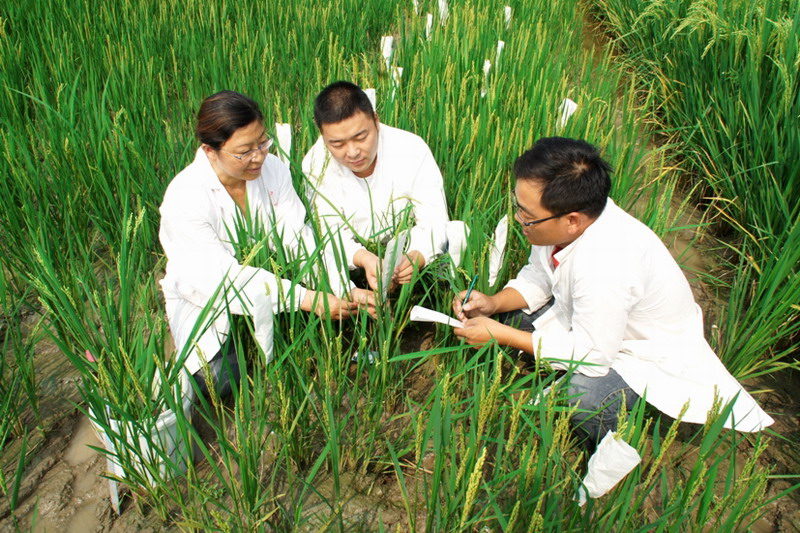 图为农业科技人员在做水稻杂交授粉